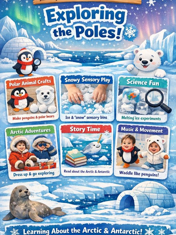 This month, the Funny Daffers will be exploring the Arctic and Antarctic through hands-on, age-appropriate activities. Children will learn about polar animals, snow and ice, and how animals and people stay warm in cold climates. Activities will include art projects, sensory play, simple science experiments, music and movement, and story time—all designed to support language development, fine and gross motor skills, problem-solving, and social-emotional growth in a fun and engaging way.